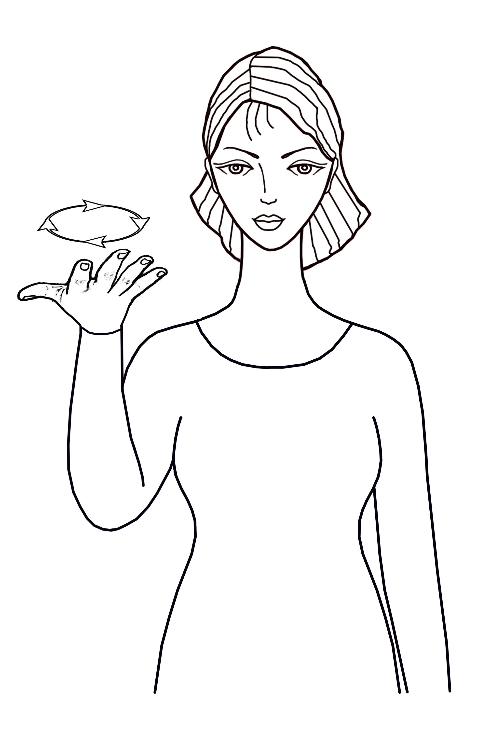 ერთხელიანი, დინამიკური ჟესტი, ზევით მიმართულია ხელისგული ფართოდ გაშლილი თითებით, სრულდება განმეორებადი, წრიული მოძრაობა. ჟესტი წარმოდგენილია მხრების დონეზე.